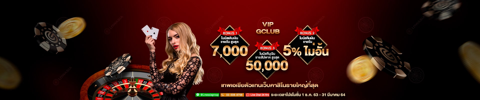 - โบนัสนี้สงวนสิทธิ์ให้แก่สมาชิก GClub วีไอพี เท่านั้น